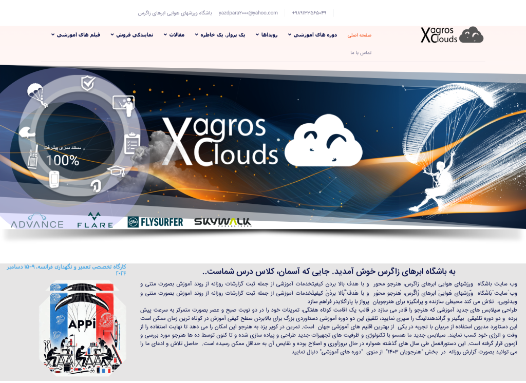 «آسمان را لمس کنید! در باشگاه ابرهای زاگرس، دورههای حرفهای آموزش پاراگلایدر در اصفهان با مربیان باتجربه و تجهیزات ایمن برگزار میشود. از اولین پرواز تا مهارتهای پیشرفته، همراه شما هستیم.»